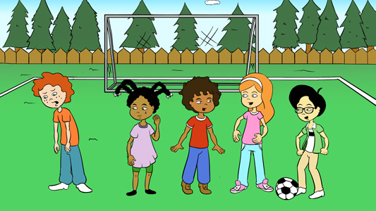 Erika and some friends are playing a game together. Erika hears a new kid say, "No one ever invites me to play." She feels sad for him.