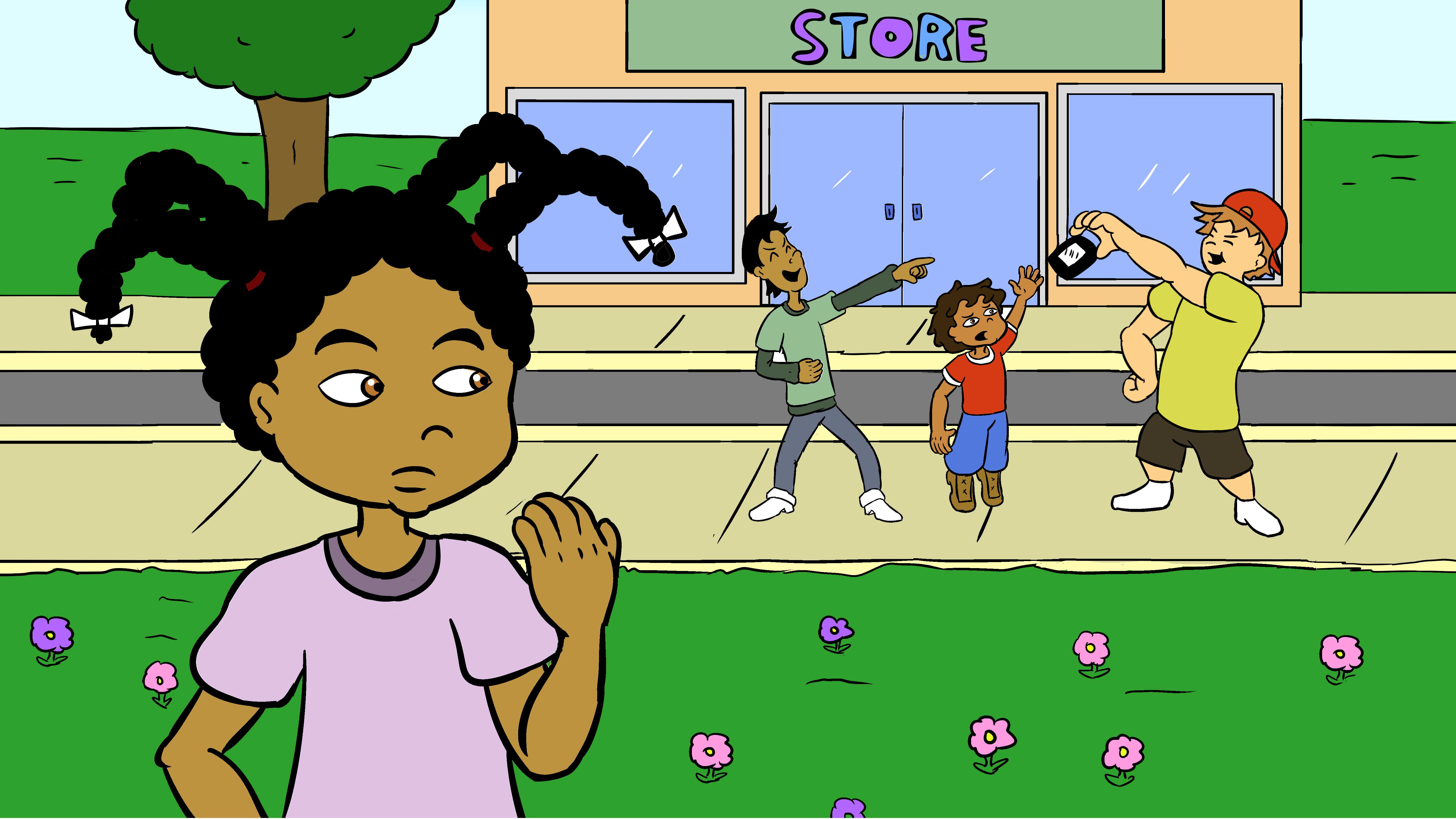 Some older kids have taken Gabriel's phone and won't give it back. Erika feels sad that Gabriel is being picked on.